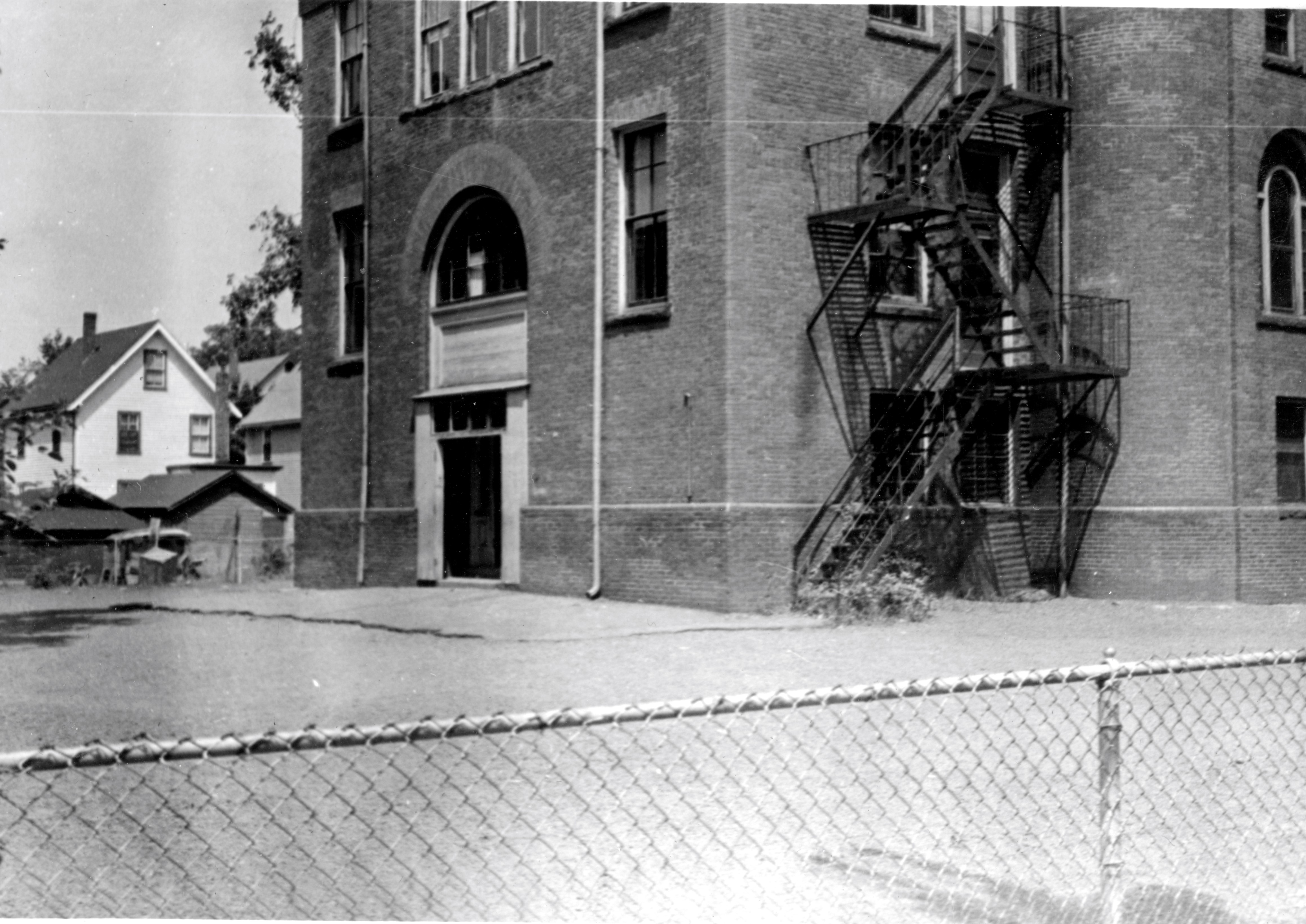 Playground of D. W. Gooch School from Florence Street where I had my first fist fight and with a girl.