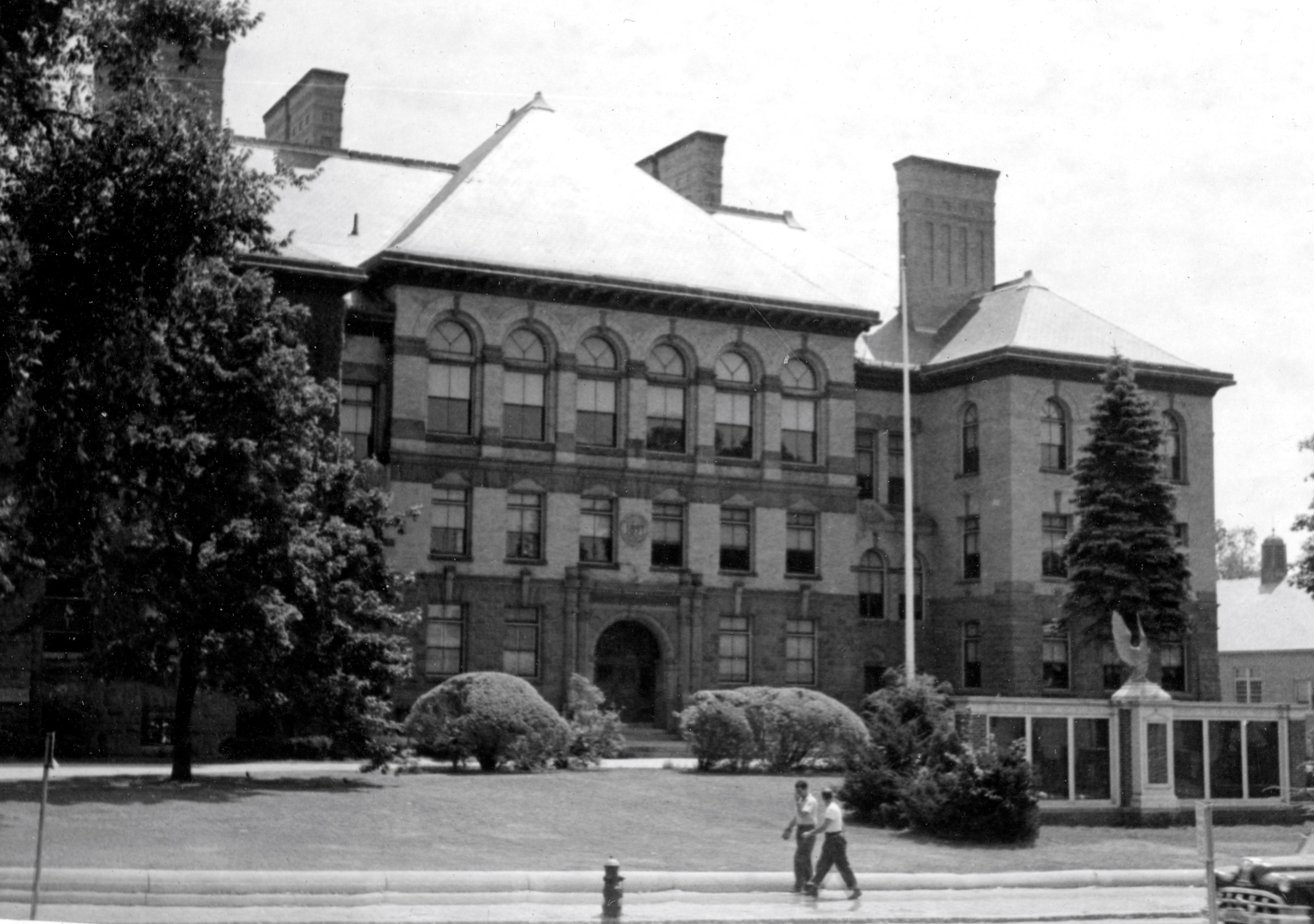 Old High School from Main Street, now the Calvin Coolidge School. My name is on the small World War II memorial in front of the school.