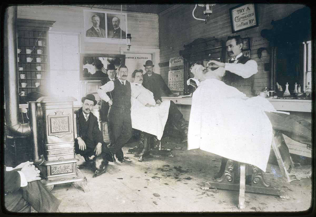 Old barber shop, Cliftondale Square, 1904