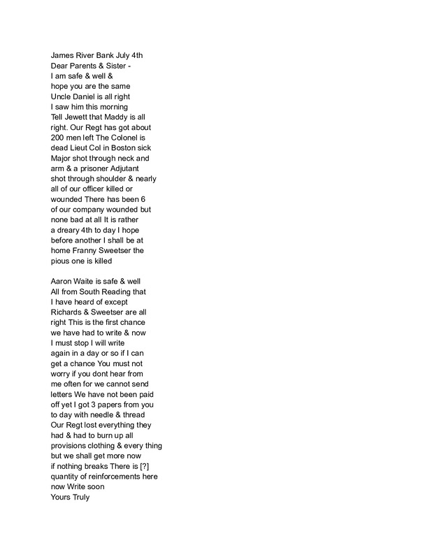 - I.E. Green Letter July 4, 1862