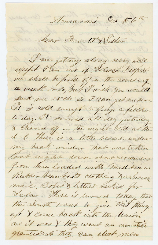 - A letter from Isaac Edward Green to his parents and sister, Lucinda.