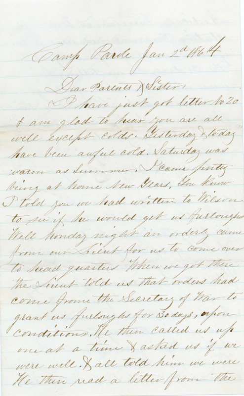 I.E. Green Letter January 2, 1864