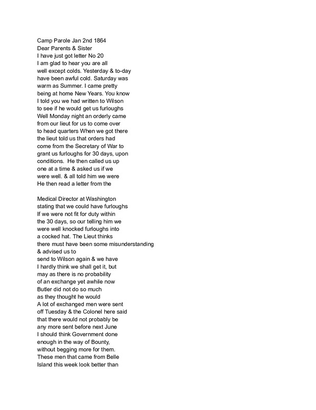 - I.E. Green Letter January 2, 1864
