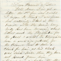 - A letter from Isaac Edward Green to his parents and sister, Lucinda.