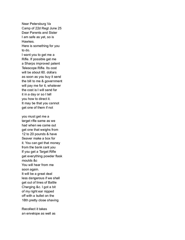 - I.E. Green Letter June 25, 1864